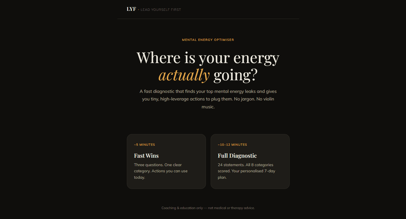 The Mental Energy Optimiser, podcast appearances, video content and selected thinking from LinkedIn. Start here if you want to explore the work in action.